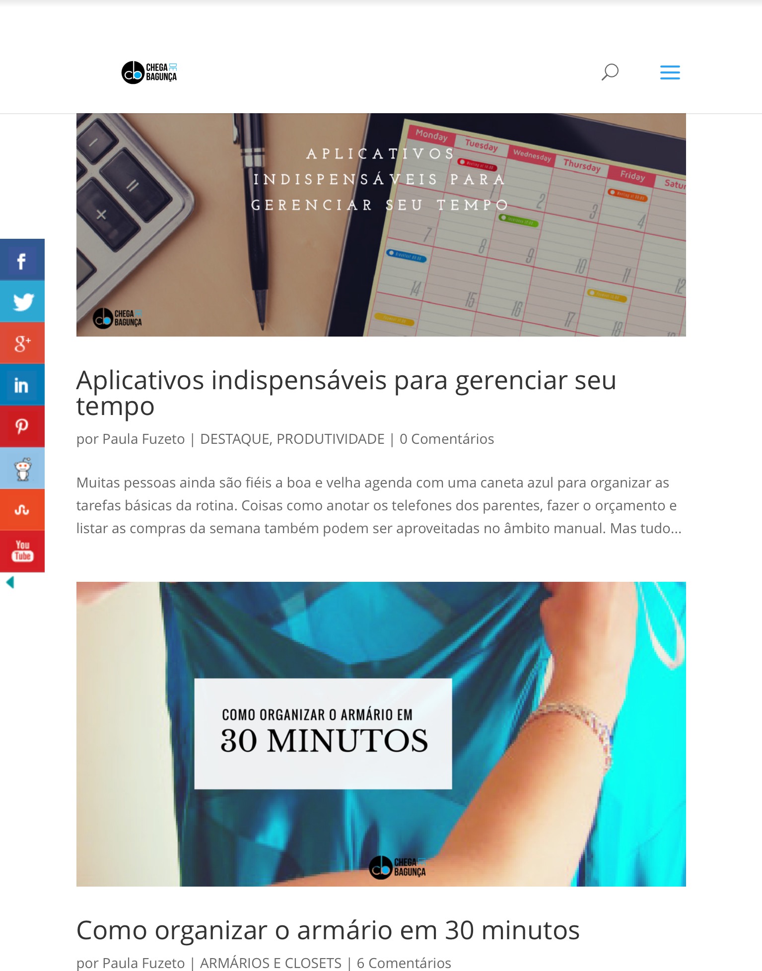 O Chega de Bagunça é um blog sobre organização, decoração e minimalismo aplicados à vida real.